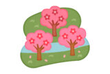 桜、さくら、ピンク、桃色、花びら、水彩のフリーイラスト素材です。